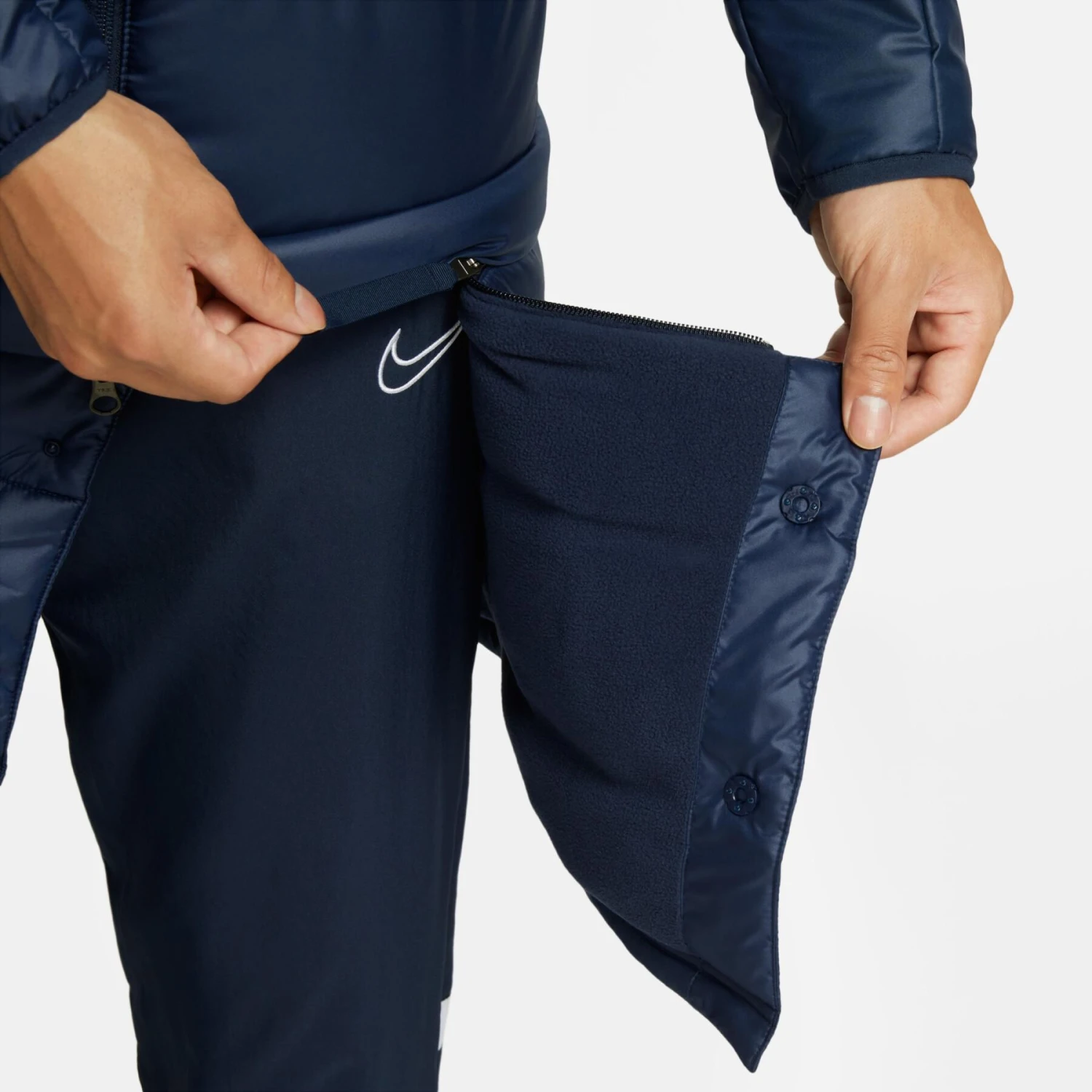 Bereiten Sie sich mit der Jacke Nike Therma-FIT auf die Kälte vor. Die leichte Isolierung speichert die Körperwärme beim Aufwärmen oder beim Training. Der abnehmbare untere Einsatz mit Reißverschluss bietet Ihnen zwei Möglichkeiten für Schutz und Wärme: lang oder extra lang.Die Nike Therma-FIT-Technologie reguliert die natürliche Körpertemperatur, damit Sie bei kaltem Wetter maximale Wärme genießen können.Der untere Einsatz kann mit Reißverschluss auf- und abgezippt werden, um zwei verschiedene Schutzlängen zu bieten.Die leichte synthetische Füllung speichert die Wärme, ohne Sie zu beschweren.