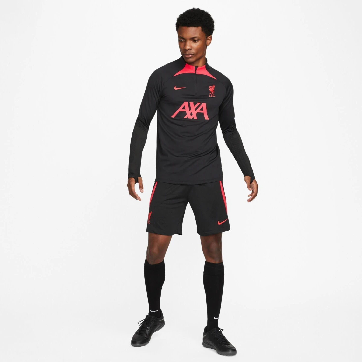 Das Oberteil Liverpool FC Strike verfügt über Details, die speziell auf aufstrebende Fußballstars zugeschnitten sind. Mit seinem eng anliegenden, stromlinienförmigen Schnitt steht nichts zwischen dir und dem Ball, während das schweißableitende Material dich kühl hält, damit du dein Talent ausleben kannst. Die Nike Dri-FIT-Technologie leitet Schweiß ab und lässt ihn schneller verdunsten, sodass du trocken bleibst und maximalen Komfort genießt. Die Daumenöffnungen halten die Ärmel in Position, wenn Sie sich bewegen, und bleiben verborgen, wenn sie nicht gebraucht werden. Längerer Saum am Rücken für guten Schutz.